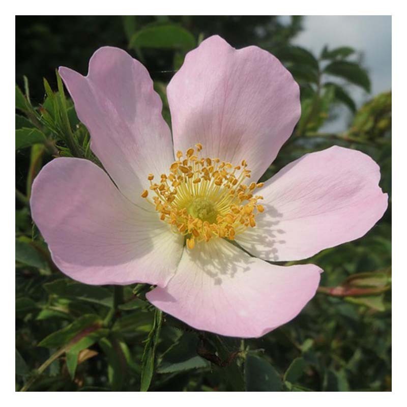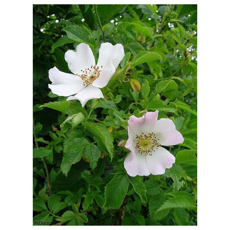 گلهای آن ریز هستند که به رنگهای صورتی، سفید، قرمز و گاهی زرد یافت میشوند. بوی آنها ملایم و مطبوع است میوه تازه گل نسترن (هیپس) حاوی ۵/۰ تا ۷/۱ درصد ویتامین C میباشد که ترکیبی از آسکوربیک اسید و هیدرو اسکوربیک اسید است.